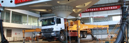 复杂工况臂架有限元分析,50万方或者使用8年以上不开裂; 整机疲劳试验场、六自由度结构件疲劳试验台,600万次以上疲劳试验,结构可靠。