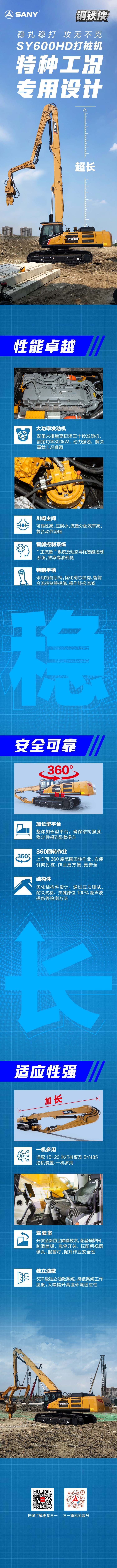 适配 15-20 米打桩臂及 SY485挖机装置,一机多用
