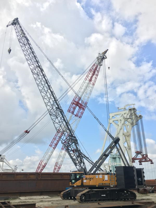 三一作为项目核心设备供应商之一,共有56台大型设备长期参与工程建设,包括28台起重设备、7台土方设备和16台混凝土设备。项目建设期间,三一产品动力强、出勤高、作业效率高,备受各方好评。