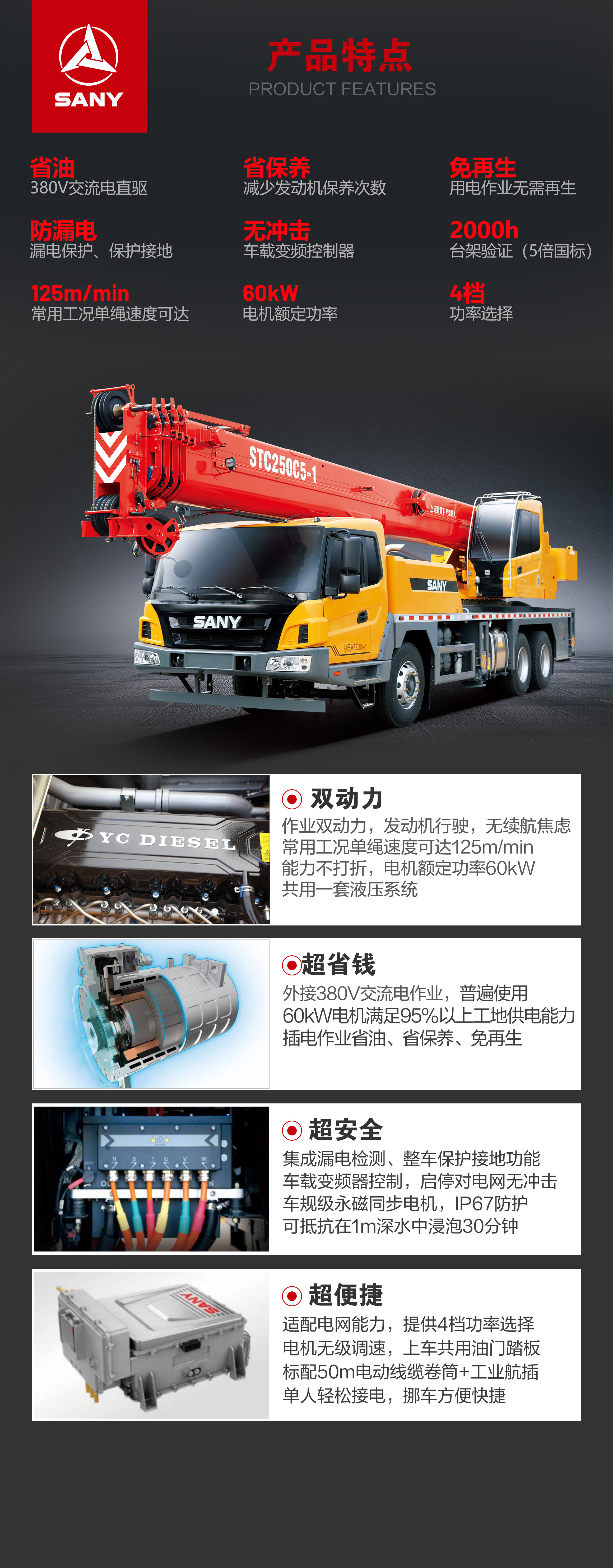 外接380V交流电作业,插电作业省油费、省保养、免再生