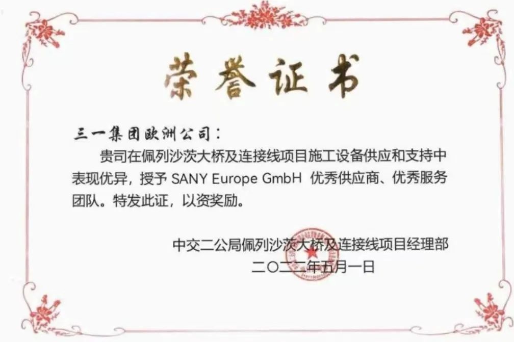 此外,为了确保工程顺利进行,三一还提供了专业团队进驻现场,提供全方位技术指导和全天候服务,得到了承建方中国交建、中交二公局等单位一致认可,并荣获多项荣誉证书。