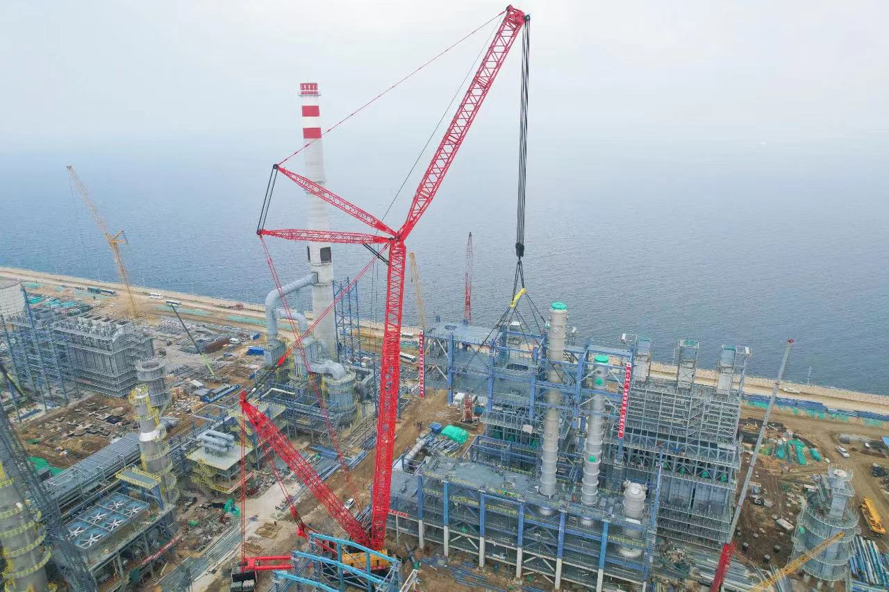 8月22日,裕龙石化炼油项目2#260万吨/年连续重整装置反再框架模块一顺利吊装就位,中油六建SCC20000A履带起重机担任主吊。