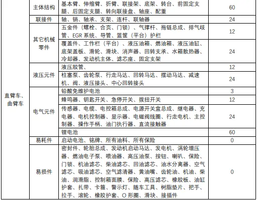 4.在质量保证期内,购买方必须按《操作手册》或《维保手册》等技术资料的规定进行日常例行检修,如:机油、柴油、冷却液等液位检查及加注,运动部件间黄油的加注或涂抹润滑,并按规定进行载重校验;必须按规定使用达到国家标准或行业标准的燃油、机油、润滑脂、冷却液及液压油等。