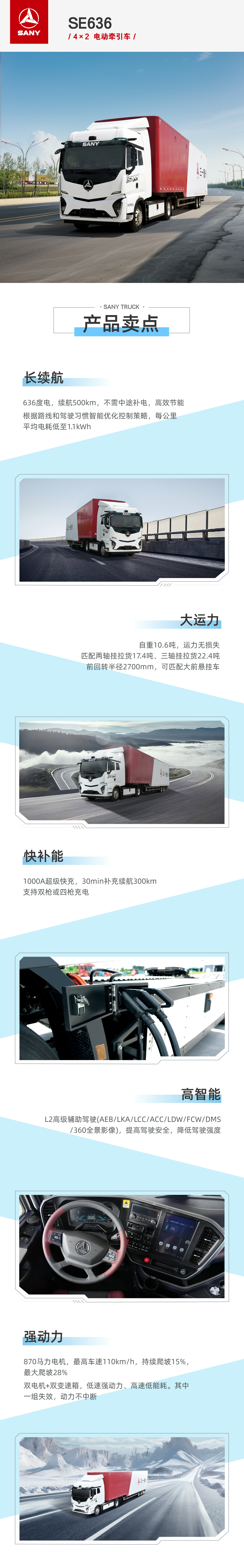 自重10.6吨,运力无损失。匹配两轴挂拉货17.4吨、三轴挂拉货22.4吨。 前回转半径2700mm,可匹配大前悬挂车。