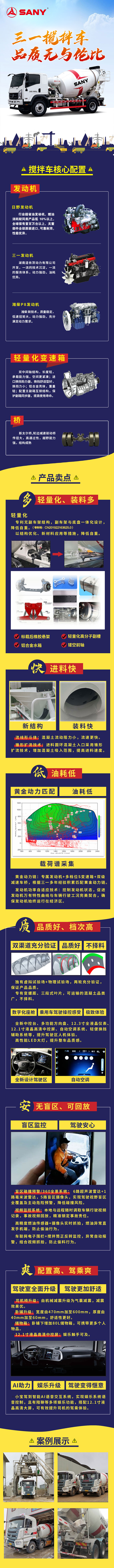 (1)黄金动力链: 专属发动机+多档位S变速箱+双级减速车桥,根据三一多年经验积累匹配优动力链。