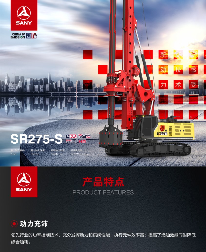 SR275-S适用于市政、房建、场馆基础工程,可用于黏土、卵石、软岩层等地质施工,具有甩土快,施工稳定高效等特点,可选配低净空模式。