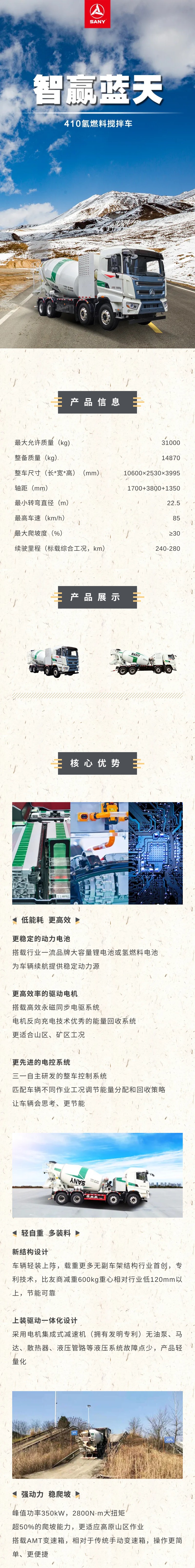 采用电机集成式减速机无油泵、马达等液压系统故障点少,产品轻量化