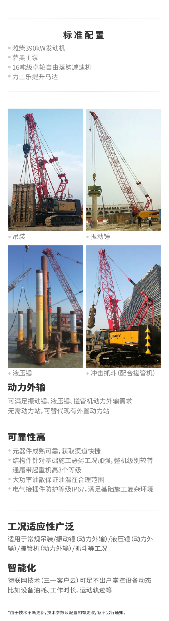 ■ 主机重量125t、8.3m大底盘、双回转减速机,施工更安全。