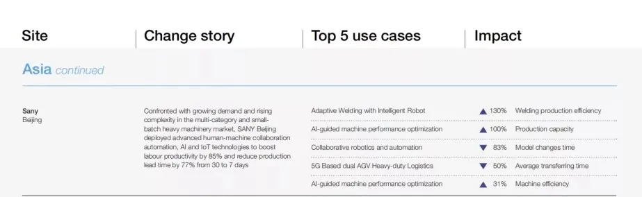 世界经济论坛官网上这样介绍三一桩机工厂的入选理由:面对多品种、小批量的工程机械市场不断变化、日益复杂的需求,三一利用先进的人机协同、自动化、人工智能和物联网技术,将劳动生产率提高85%,将生产周期从30天缩短至7天,减少77%。